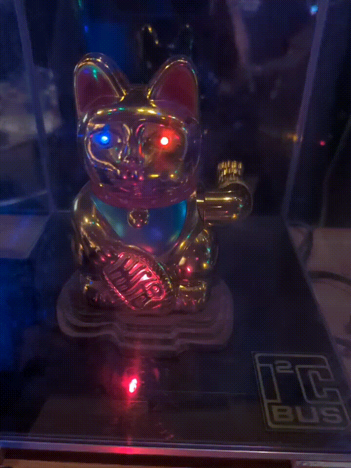 Turns out, when you scan your RFID token in the reader, the receipt would give you another hint: the cat could only read QR codes. So I created a QR code with the number as a string and the cat started waving: